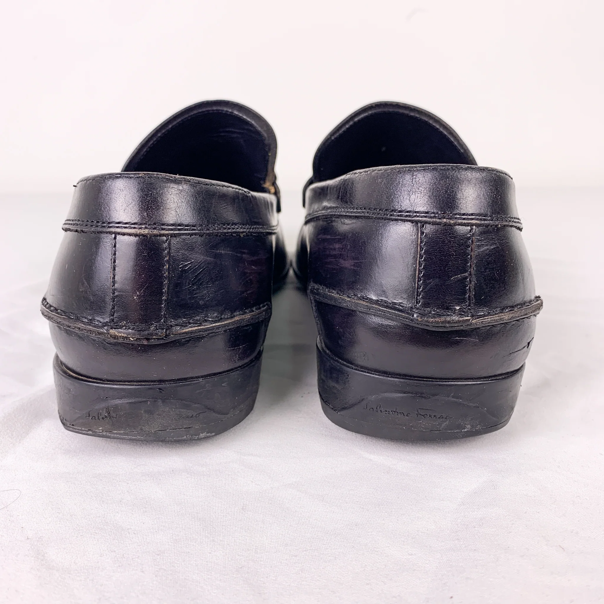 -70%Salvatore Ferragamo Black Leather Loafers Shoes—